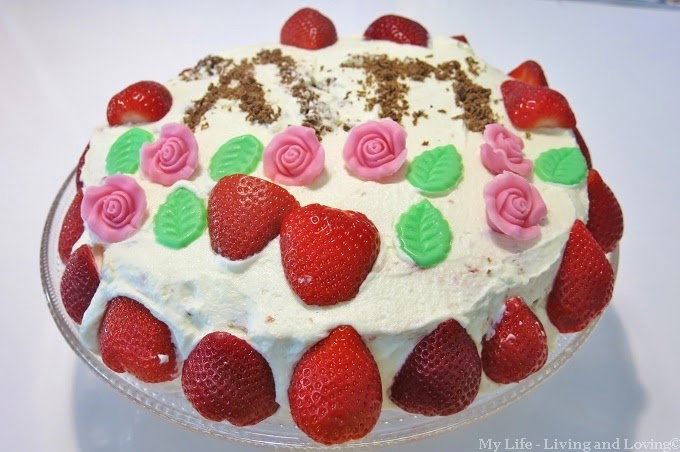 Alkuillasta mun vanhemmat tuli käymään ja syötiin yhdessä. Tärkein juttu ruokailussa kuitenki oli se jälkiruoka, nimittäin poikien tekemä kakku. Pojat leipoi edellisenä päivänä äitienpäiväkakun ja voin kertoa, että oli hieman vaikeuksia pysyä poissa siitä touhusta tai olla antamatta edes pieniä vinkkejä, mutta toisaalta kerrankos sitä nyt saa itse katsoa lätkää kun talon miehet leipoo kakkua. Kelpaa. Ja oli muuten hyvää. Eikö ole kauniskin, niin hempeä.